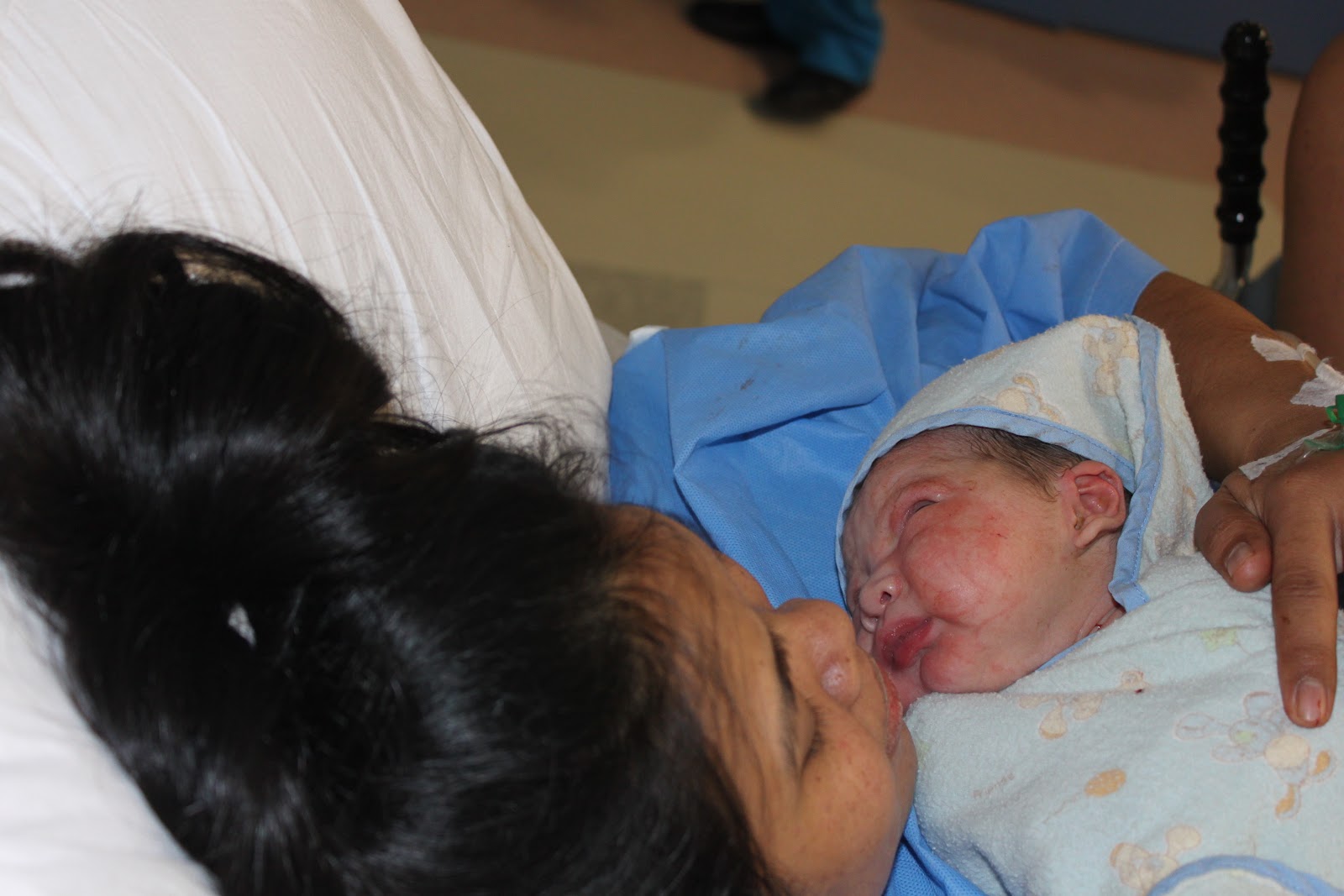 Mommy holding Ryan - a long day ending with our Bundle of Joy joining the Family - we are very proud parents!